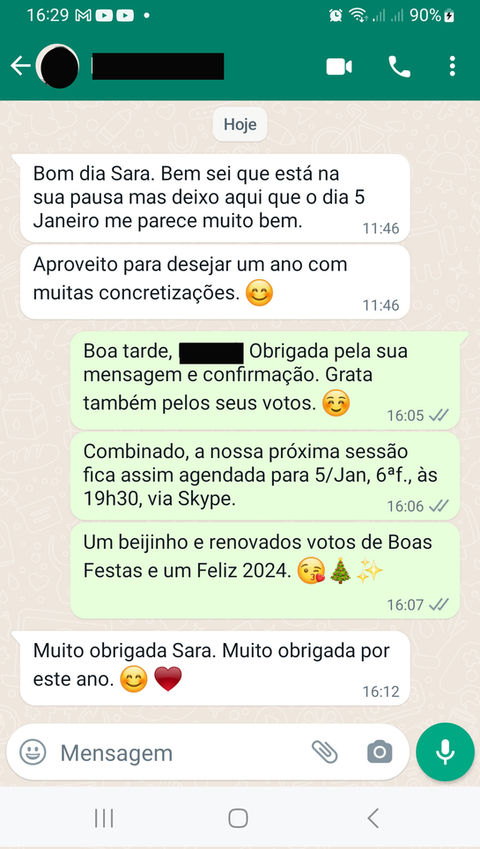 Converse comigo através de vídeo-conferência, a partir de qualquer lugar. As consultas online permitem uma comunicação em directo e têm a vantagem de ultrapassar impedimentos de deslocamento ao consultório (por questões de distância, tempo ou comodidade). Com privacidade e segurança, para traçar o seu caminho de mudança. Você está a um pequeno passo para fazer acontecer... apenas precisa de fazer a sua marcação.